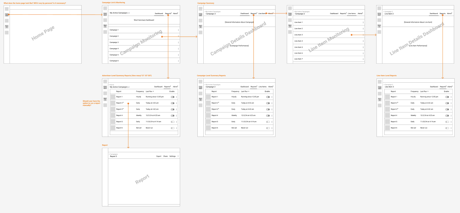 As the project evolved, it was determined that the main culprit of client retention issues was a lack of transparency and reporting available to the client. This allowed research to make data-backed recommendations to the Product leadership regarding the prioritization of Monitoring and Reporting capabilities in the platform. Implementation is ongoing for Reporting Enhancement and plans to be launched in Q2 2025. With Design, Research was able to formulate designs that addressed pressing needs of performance by campaign, performance by targeting, and performance by KPI.