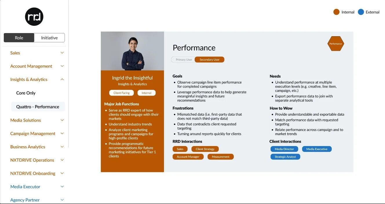 Our main goals for this discovery were rooted in observational study as we set out to map the current internal processes and then combine that with competitive offerings. As our solution was going to change the behavior of our core operational teams, we had to have a firm understanding of each step and pain point, conducting detailed task analysis that would drive shared service blueprints. These were complemented by Client Satisfaction and Internal Employee survey initiatives that we conducted periodically.